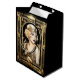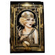 Uma linda garota loira Flapper está usando um top brilhante de falso ouro fora do ombro e uma faixa para a cabeça que parecem brilhar e reluzir contra o fundo preto. Ela está usando uma grossa delineador preto e batom vermelho escuro que faz com que sua pele de porcelana pareça irradiar luz. Ela está enquadrada em uma moldura ornamentada de falso ouro em estilo art déco retrô e está prestes a dançar a noite toda. Este design é ideal para um tema de aniversário, chá de noiva, casamento ou aniversário de "O Grande Gatsby", "Os Anos Loucos", garota Flapper dos anos 20. Também é ideal para projetos de decoupagem e scrapbooking.