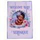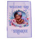 Traga uma vibração sonhadora costeira para o seu chá de fraldas com este lindo design pastel! Apresentando uma adorável menina afro-americana com pele castanha esvoaçante e cabelos escuros encaracolados, descansando pacificamente em uma concha branca aparada a ouro. Colocada contra um fundo pastel macio com flores tropicais cor-de-rosa, roxo e azul-d'água, este design encantador à beira-mar traz elegância e alegria para a sua celebração. Perfeito para uma praia, pastel macio, ou chá de fraldas inspirado na sereia, mergulho e enxertos, ou os primeiros aniversários.