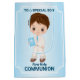 Para um Filho Especial/Primeiro Sagrado saco de presentes da Comunhão é desenhado com um menino giro e moreno segurando bíblia. Você pode manter o texto ou alterá-lo para seu próprio texto clicando na opção PERSONALIZAR.