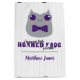 Conhece um bebê a caminho? Destinado a ser um sapo? Esta design é feita em roxo com um adorável sapo de chifre de bebê - completo com gravata de bolso. Grande sapo na frente com um lugar para seu nome com um padrão repetitivo do sapo no verso.