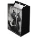 Gato beco escruffy em cinzas texturizadas e fundo preto para o aniversário. O texto pode ser alterado.