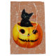 Sacola Para Presentes Média Gato de Halloween em Pumpkin