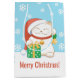Sacola Para Presentes Média Gato de Natal Branco num Chapéu Vermelho