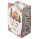 This fun and festive gift bag can be personalized with your name, relation or title. It features a watercolor gingerbread house and beautiful red poinsettia flowers. The text combines handwritten script and sans serif fonts for a stylish and modern look. The snowman, decorated pine trees and holiday wreath add a festive touch. This is perfect for Christmas gifts and party favors.