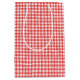 Sacola Para Presentes Média Gingham Vermelho e Branco