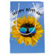 Sacola Para Presentes Média Girassol de aniversário com óculos de sol retrô