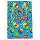 Saco de presente de aniversário personalizado e bonito com um padrão vermelho, verde e azul de discos de golfe de disco.