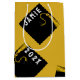 Saco de presente de graduação criativa para o formando com boné preto e ouro. Para personalizar o texto de edição para adicionar seu nome e ano de classe de mais velho.