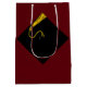Saco de presente de graduação criativa com design preto e boné de ouro sobre fundo de marrom. Editar texto para adicionar o nome do mais velho.