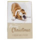 Bolinho de Inglês Foto de Natal Média Bag de Presente. Saco de presente de fotos de Natal personalizado e bonito com um cachorrinho de cachorro-da-escola inglês. Personalize o cartão com sua foto de estimação da família. Feliz desejo de Natal está na escrita moderna.