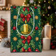 Sacola Para Presentes Média Green Pattern Gold Candle Poinsettia Flower