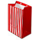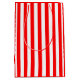Saco médio com listras vermelhas e brancas na frente e atrás. Ambos os lados são vermelhos sólidos. Personalizável. Moderno e moderno, é a bolsa clássica perfeita para doação de presente.
