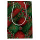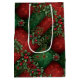 Um padrão de Natal rico e grunhido com holly em um fundo verde e vermelho marcado.