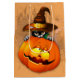 Sacola Para Presentes Média Halloween Cute Kitty Witch and Pumpkin Friend