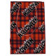 Halloween gift bag with ghost candle lettering on a red plaid background. Great for party favors, spooky presents, and festive holiday wrapping.