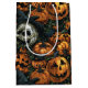 Padrão de abóbora do Halloween Saco médio de presentes em cor escura