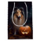 Sacola Para Presentes Média Halloween Rough Collie Com Pumpkins Assustado