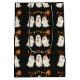 Make your favors boo-tiful with this Halloween gift bag featuring three cheerful ghosts celebrating under festive orange-and-black banners and stars. Playful, modern, and perfect for spooky season, this durable gift bag adds a charming touch to party favors, classroom treats, or hostess gifts. A polished, memorable presentation that guests will love!