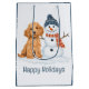 Sacola Para Presentes Média Happy Holidays Winter Goldendoodle Dog Snowman