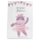 Hippo Ballerina Comemora o aniversário do seu pequeno aniversário com uma linda bailarina de hippo roxo. Design apresenta hipopótamo roxo posando em seu tutu rosa. Este tema é ideal para todos os pequenos bailarinos e bailarinas. O design é completamente personalizável. Veja o papel de coordenação e presentes.