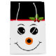 Esta bolsa de presente de Natal é mostrada com uma congelação festiva, a impressão de arte do boneco de neve. Tamanho Médio Mostrado Brilhante