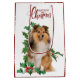 Sacola Para Presentes Média Holly Red Berry Shetland Sheepdog Natal