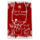 Ilustração de Natal em vermelho e branco. Red Snowman e cão - Deixem-no nevar