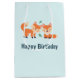Saco de presente de aniversário feliz com uma ilustração gráfica de 2 raposas de laranja bonitinhas e felizes.