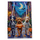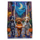 Adorável Lagotto Romagnolos vestidos com fantasias lúcidas de Halloween carregar baldes de abóbora enquanto trick ou tratava sob o céu iluminado pela lua. Este design festivo põe em evidência o casaco, humilde, olhares da raça, e a personalidade afetuosa, capturando perfeitamente a atmosfera assustadora e divertida da noite de Halloween. Uma celebração encantadora para amantes de cães e fãs de Halloween.