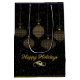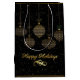 Felizes Feriados - lanternas de ouro e poeira sobre fundo preto. Modelo de sacos de presente personalizáveis