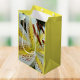 Glamorize seu brinde com este saco de presentes médio, com tema floral, com uma forma verde que mostra a foto de uma flor oriental branca, manchada, com listras amarelas. Selecione o estilo do seu saco-presente.