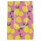 Aperte em uma pequena celebração com este doce design! A bolsa de presente da Festa de Limão Cor-de-Rosa e Amarelo vai ajudá-lo a organizar uma bela e elegante festa com tema de limonada. Esta design apresenta uma ilustração artística de um limão inteiro com caule e folhas ao lado de um limão dividido por metade. A cor de fundo rosa faz com que a bolsa seja realmente pop!
