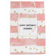 Sacola Para Presentes Média Listras de Lâmpada Rosa | Faux Dourado Confetti Bi