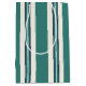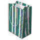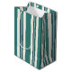 Uma bela bolsa de presente de tamanho médio com listras verdes para qualquer tipo de presente ocasional, como aniversários, casamentos ou chás de noiva