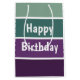 Um padrão horizontal verde e roxo riscado e o texto: Feliz aniversário. Você pode clicar em personalizar e editar o texto. Escreva duas palavras em uma linha.