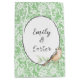Design de renda branca elegante com pinto-d-água no galho-folha. O fundo verde da casa e os novos nomes podem ser alterados. Pode ser usado para casamento ou aniversário.