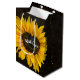 Girassol amarelo com centro cardíaco sobre fundo castanho escuro e textura preta. O texto pode ser editado ou excluído. O plano de fundo pode ser alterado.