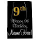 Este luxuoso, elegante e sofisticado design do giftbag temático de aniversário apresenta um grande número ordinal "9º" com um padrão de gradiente de imitação/falsa inspirado em ouro, além da mensagem de saudação de aniversário "Feliz 9º aniversário", e um nome de destinatário personalizado em uma fonte estilo script. O fundo é preto colorido. Um saco de presente temático de aniversário como este pode ser usado para dar um presente ou presente em comemoração do nono aniversário de alguém. [~Z0000514]