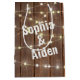 Sacola Para Presentes Média Luzes De Casamento Na Madeira Com Nomes
