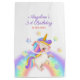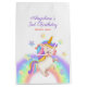 Adorable kid's birthday gift bag featuring a cute watercolor unicorn with pastel rainbow and surrounded by colorful stars. ideal party supplies for your little girls' birthday celebration!