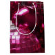 Saco de presentes com uma coleção de na moda de bolhas de Natal cor-de-rosa e prateada. Um design personalizável para você personalizar com seu próprio texto, imagens e ideias. Imagem criada usando uma fotografia original e técnicas digitais.