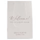 Esta bolsa minimalista de presentes decorada com tipografia romântica e elegante. Adicione elegância - você pode mudar as alças para guardar fita e adicionar nomes de etiqueta de convidados. Para alterar nomes, data e texto de boas-vindas, clique em "Personalizar". Atenção! Ao redimensionar, é necessário alterar a posição dos elementos inferiores. Para mover o texto ou alterar o tamanho, a fonte ou a cor, clique em "Clique para personalizar mais". Projetado para coordenar com a Coleção de Convite Caseiro "ETHEREAL". Veja o link de coleção nesta página para ver todos os itens correspondentes neste belo design ou veja a coleção aqui: https://bit.ly/2W3Hg9Z