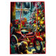 Bonito ilustração digital ai art de uma árvore de natais vintages, antiquado triciclo, ícones na janela olhando para uma noite de neve. Bonito bolsa de presente de Natal para trazer esses sentimentos nostálgicos da véspera de Natal.
