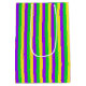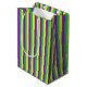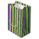 Saco médio de presente com um padrão verde, amarelo e listrado roxo. Personalizável. Perfeito para Mardi Gras.