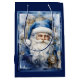 Um belo saco de Natal azul e branco com o Pai Natal em azul Dê seus presentes em elegância nesta época de Natal