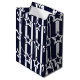Marinho Blue White Star Stripes Padrões Médios de Presente Projetados por Nisha Prabhu. O Marinho Blue White Star Stripes Medium Dift Bag é a maneira perfeita de apresentar seus presentes em estilo. Este saco-presente de tamanho médio apresenta uma faixa marinho azul de estrelas branca, criando um design costeiro e festivo. Quer você esteja doando para um aniversário, feriado, ou qualquer ocasião especial, esta bolsa de presentes adiciona um toque de elegância e charme. O seu design versátil torna-o adequado para adultos e crianças, e pode acomodar uma variedade de formas e tamanhos de presentes. Faça seus presentes se destacarem com o Marinho Blue White Star Stripes Pattern Medium Gift Bag.