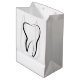 Saco de presentes com uma ilustração de um dente dentário feito com um contorno preto.
