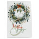 Uma ilustração perfeitamente detalhada da coroa das festas, composta por várias folhas e ramos verdes, enfeitados com bagas vermelhas brilhantes. A coroa apresenta folhagem embaçada, sagrada, e verde-esverdeada com sotaques de iluminação sutis, dando-lhe uma sensação festiva e elegante. O design é delicado, mas vibrante, perfeito para decorações de Natal ou trabalho de arte sazonal. Mude a foto e o nome para o seu querido bebê e tenha um presente de ornamento de árvore da família festiva!