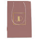 Sacola Para Presentes Média Modelo Elegante Moderno Dourado Rosa de Monograma