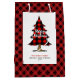 Sacola Para Presentes Média Modern buffalo plaid Christmas gift bag editable